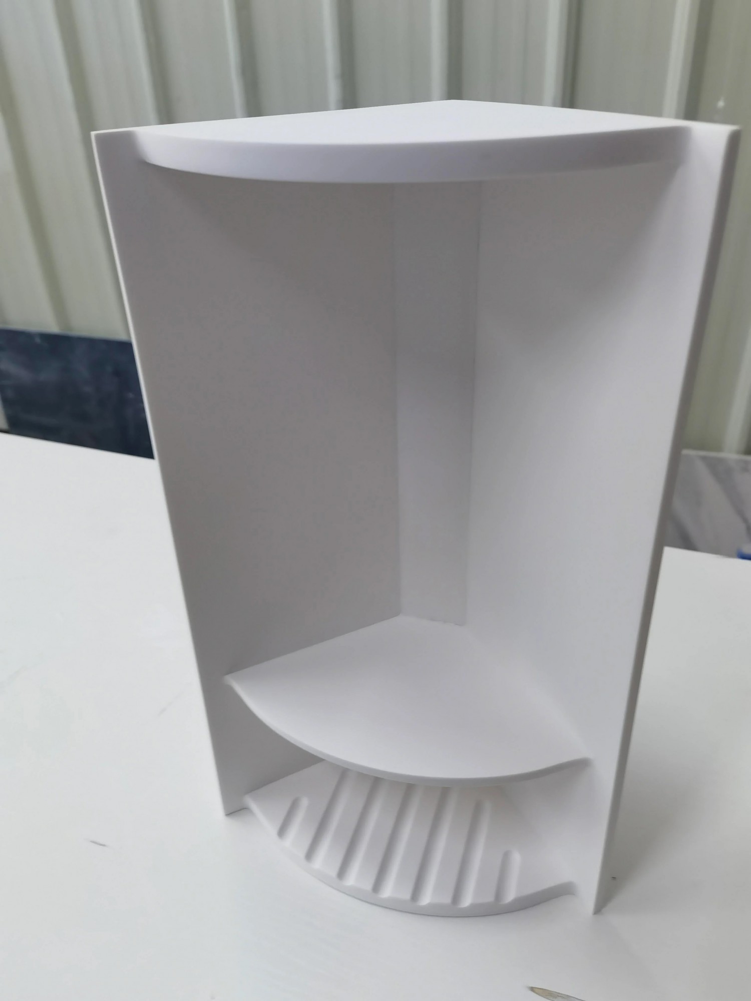 Solid surface levhalardan üretilen lüks duş panelleri. Gözeneksiz yüzeyi sayesinde, doğru temizlendiğinde küf ve leke tutmaz.