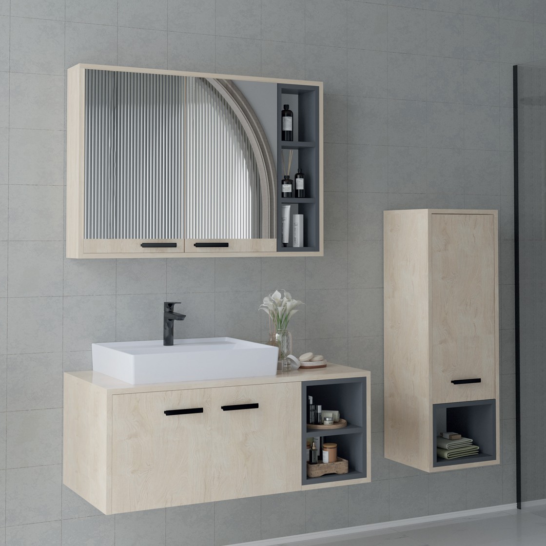 - Modern Tasarım Trendleri: Lake dolaplar, parlak ve pürüzsüz yüzeyleriyle minimalist ve modern banyo tasarımlarına uyum sağlıyor. Mat veya ipek mat seçenekler de popüler.